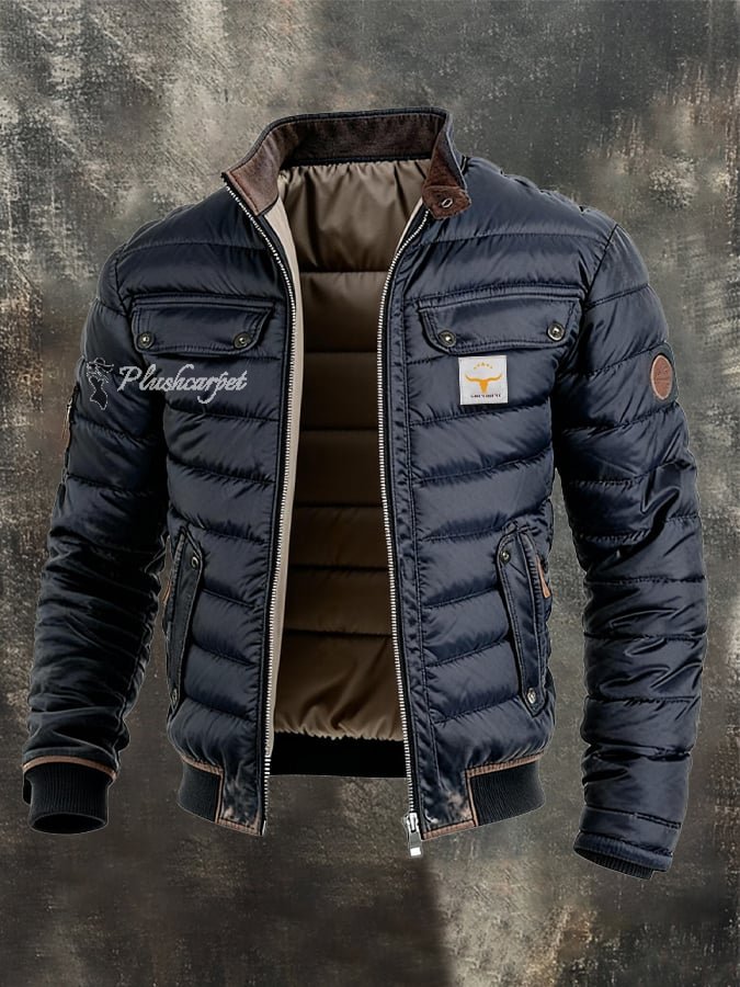 Retro-Steppjacke für Herren, warm gefüttert, mit vielen Taschen und Baumwollfutter, für Outdoor-Aktivitäten