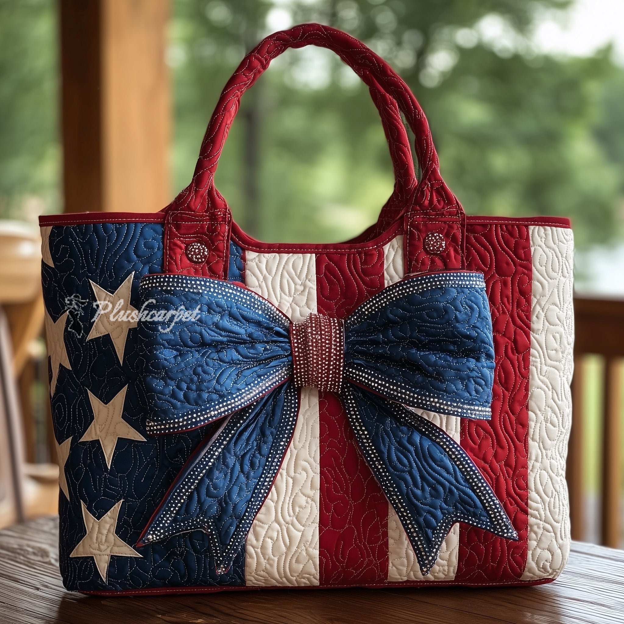 Patriotic Bow Quilted Tote Bag
