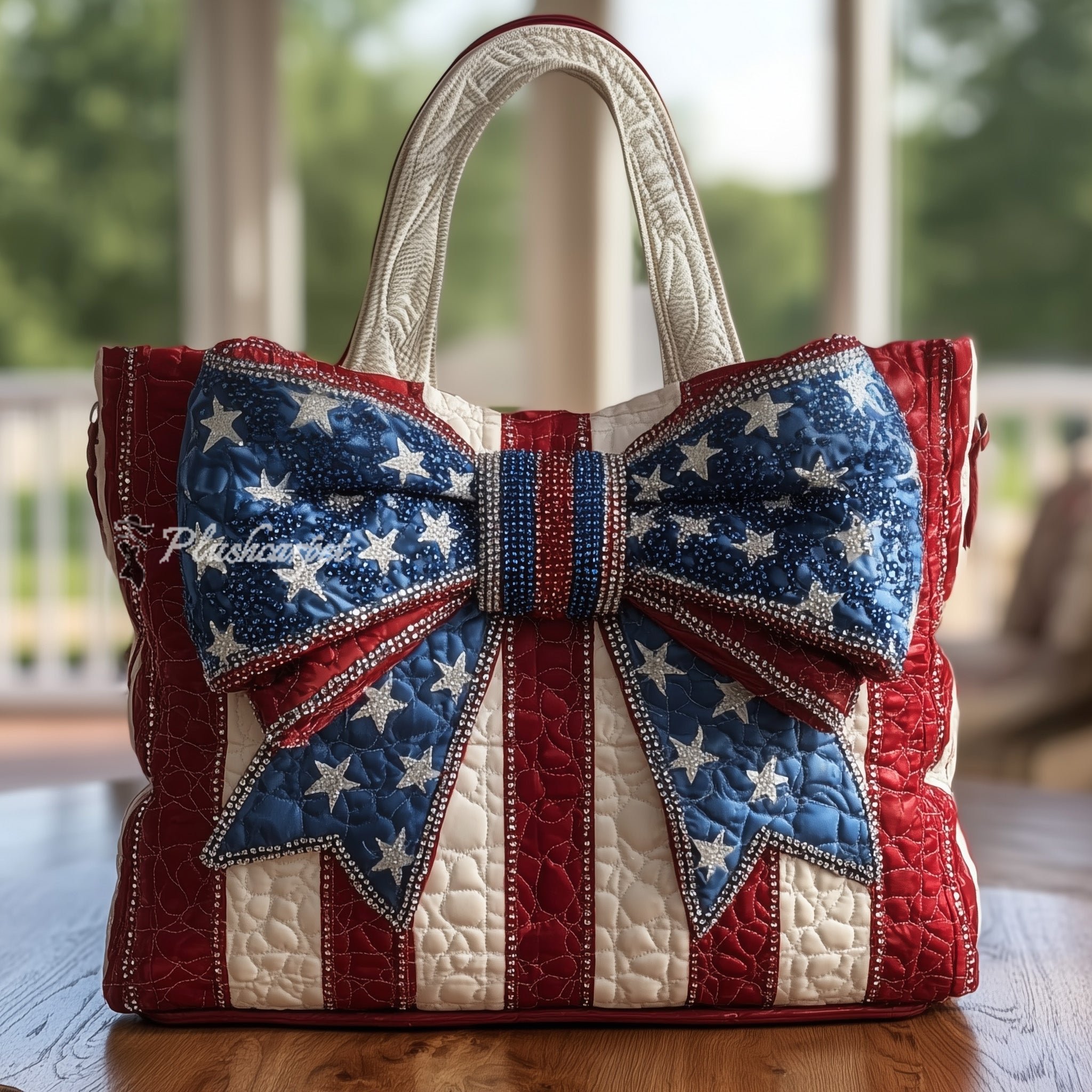 Patriotic Bow Quilted Tote Bag