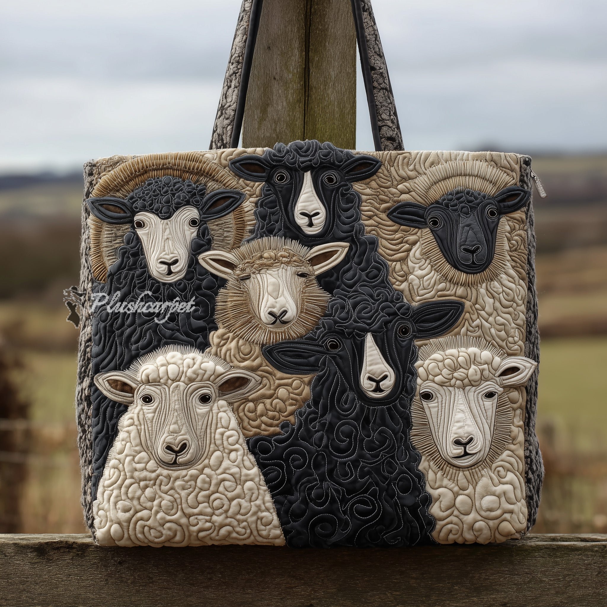 Rustic Sheep Quilted Tote Bag