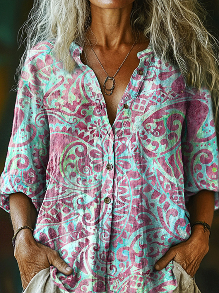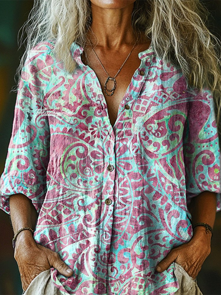 Women's Art Floral Hippie Vintage Print Long Sleeve Shirt