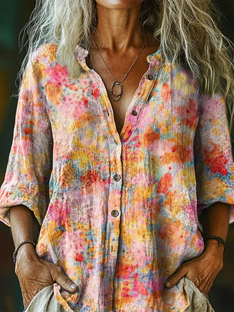 Women's Art Painting Hippie Vintage Print Long Sleeve Shirt
