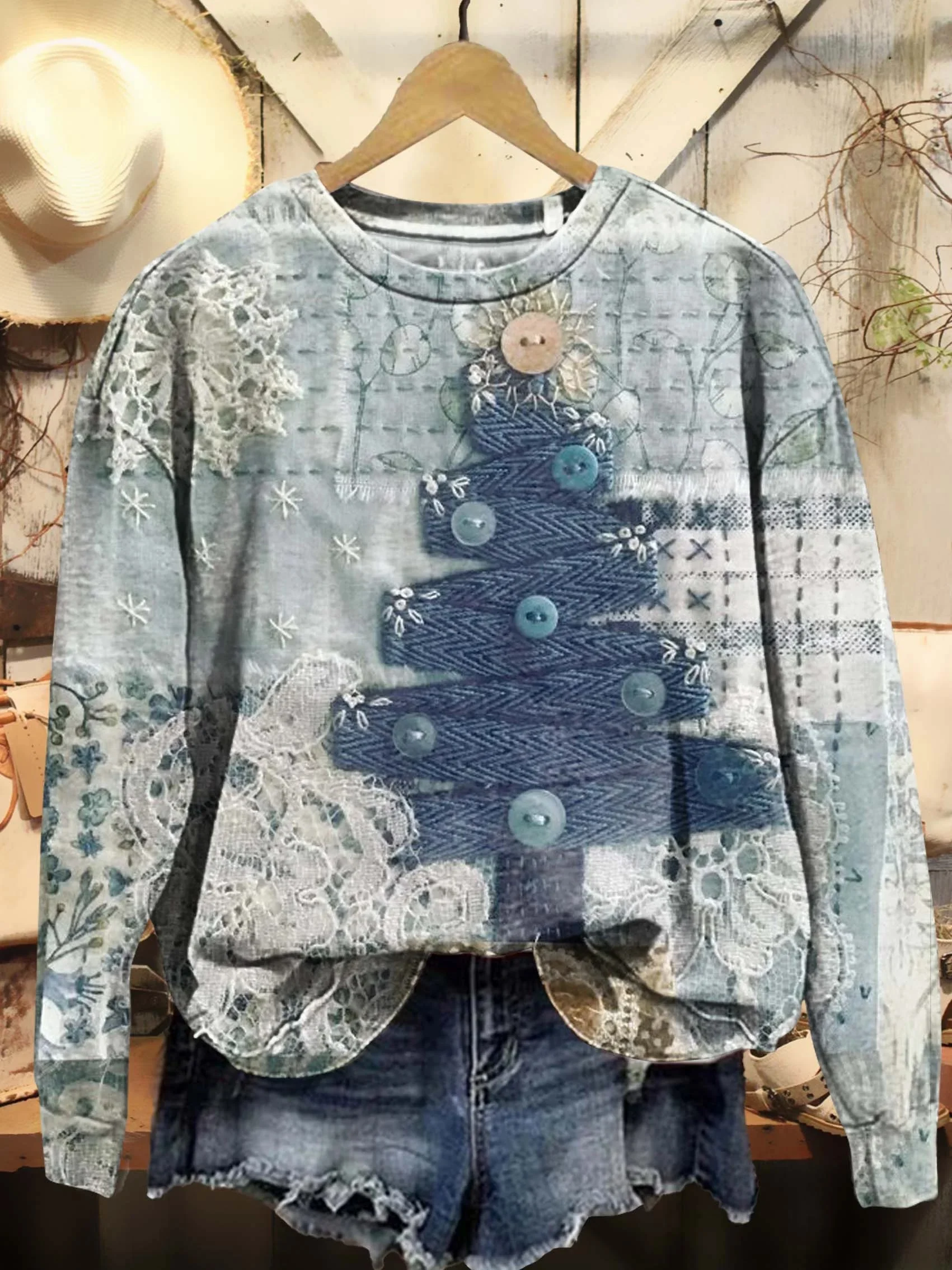 Women's Christmas Tree Crew Neck Pattern Neck Sweatshirt
