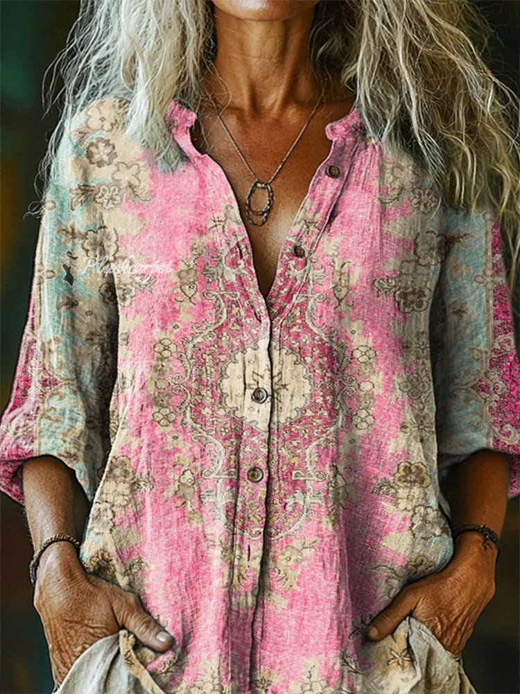 Women's Ethnic Style Tattoo Pattern Art Print Casual Cotton Linen Shirt