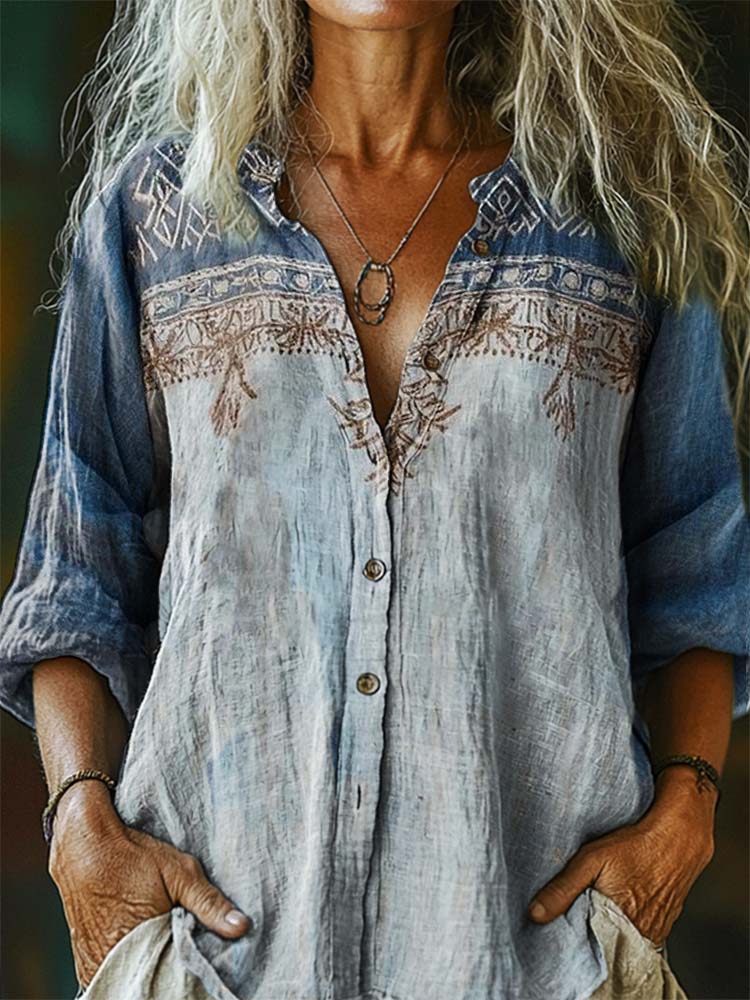 Women's Ethnic Style Tattoo Pattern Art Print Casual Cotton Linen Shirt