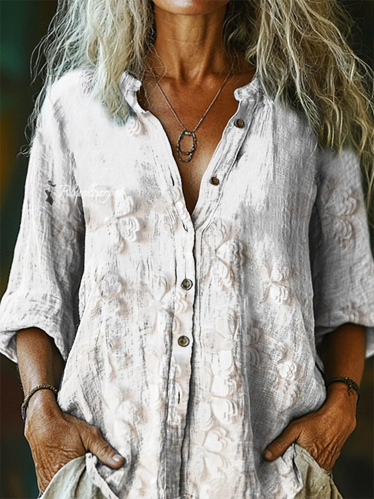Women's Floral Pattern Art Print Casual Cotton Linen Shirt