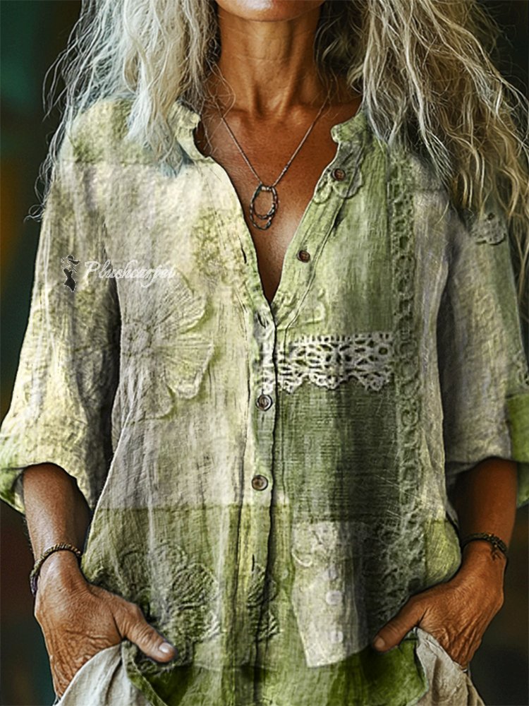 Women's Floral Pattern Art Print Comfort Cotton Shirt