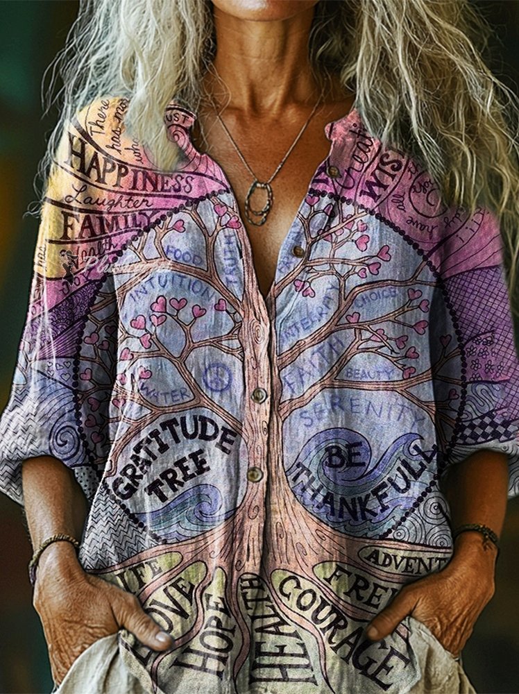 Women's Hippie Peace Art Print Casual Cotton Linen Shirt