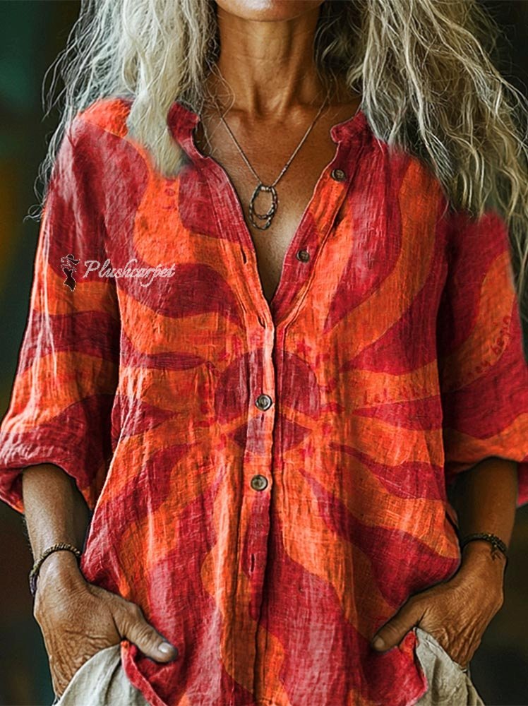 Women's Hippie Peace Print Casual Cotton Linen Shirt