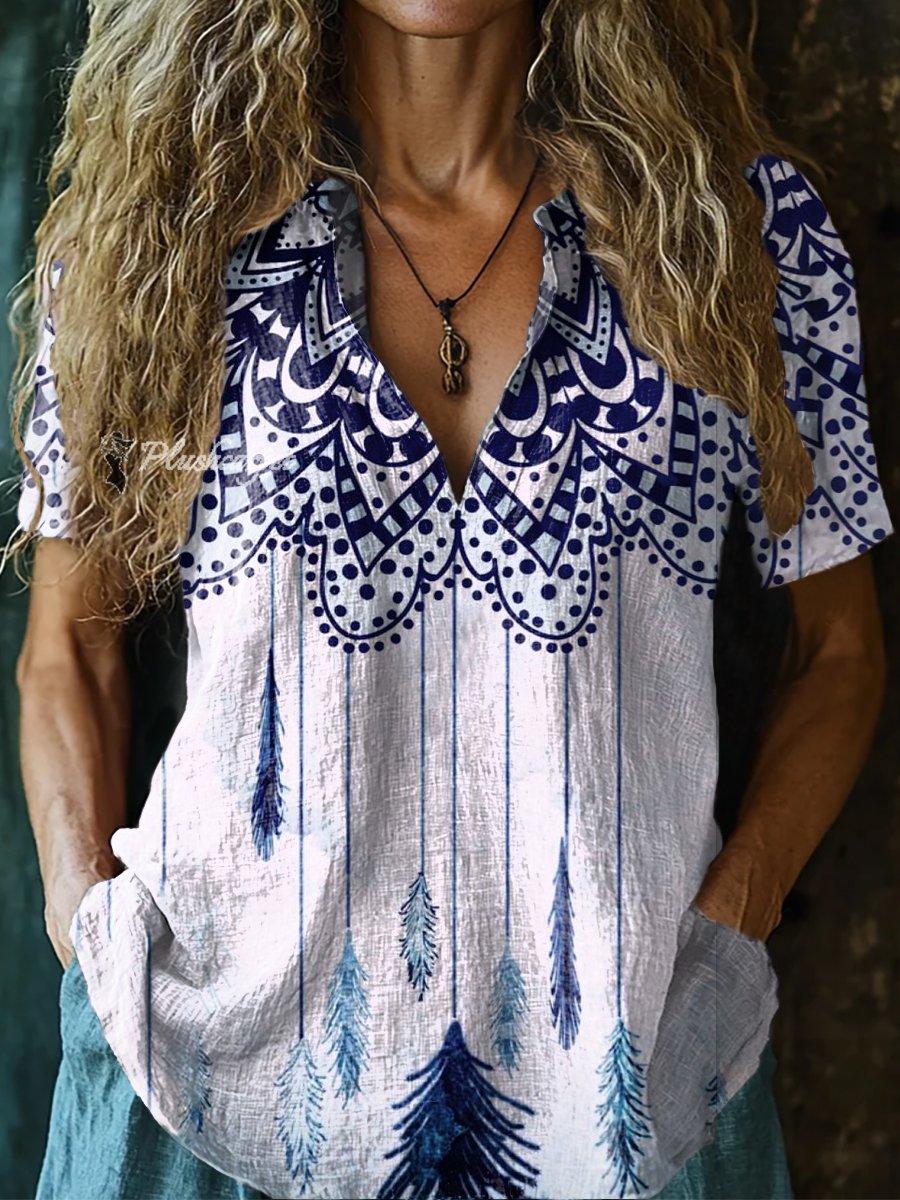 Women's Mandala Embellished Pattern Art Print Casual Short Sleeve Comfortable Cotton Shirt