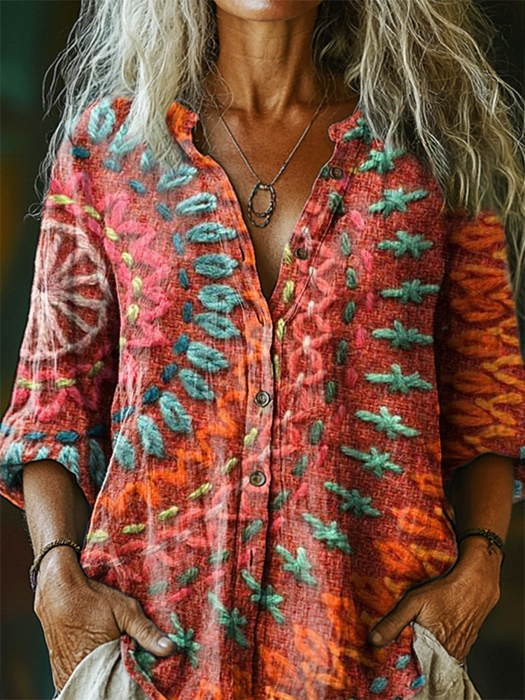 Women's Mandala Pattern Art Print Casual Cotton Linen Shirt