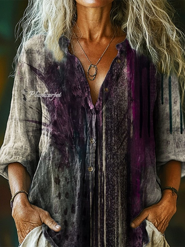 Women's Vintage Art Print Casual Cotton Shirt